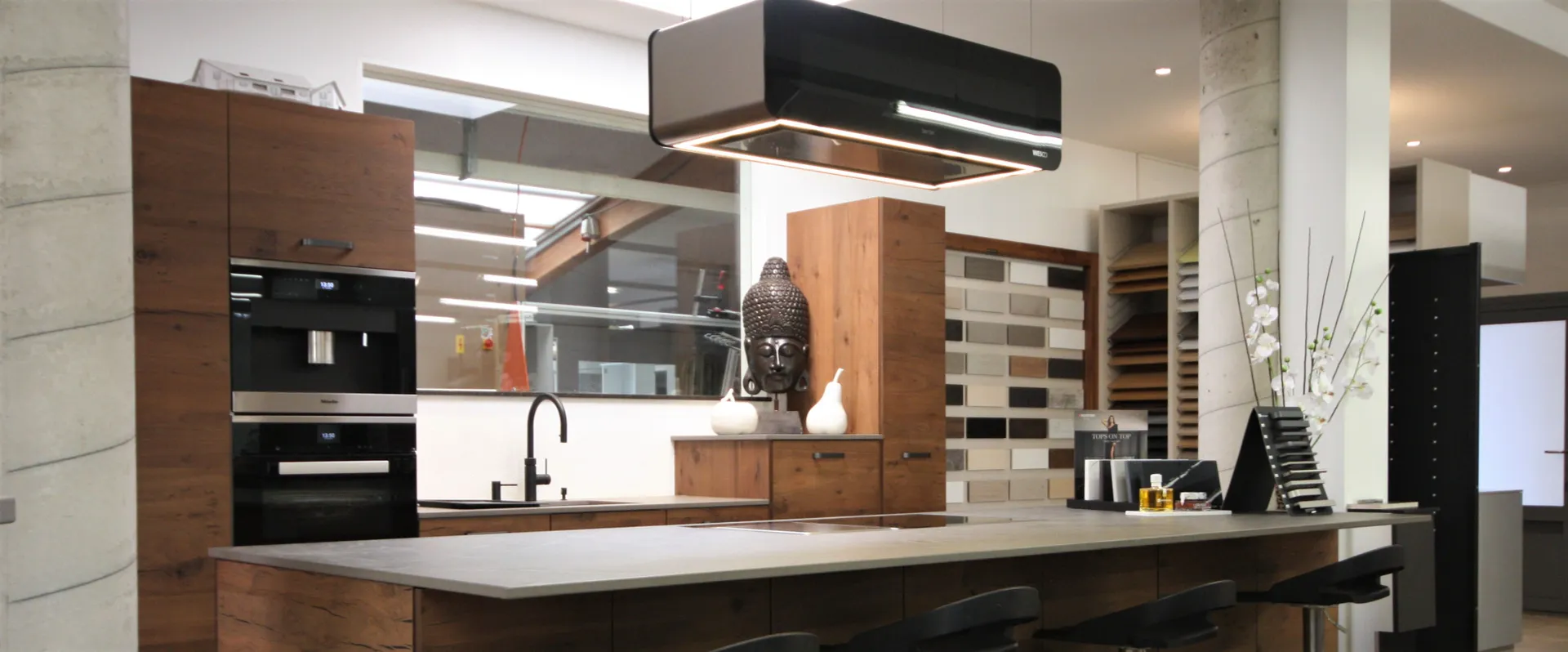 Each step is carried out with special care. From our offices for project management, to our showroom for selecting materials and appliances, through to our production workshop and final assembly at your home — we manage the entire process and can therefore offer and deliver a truly exclusive layout.