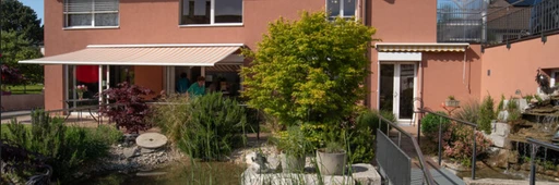 This former family villa has been converted to meet the needs of its 10 residents . The garden features a terrace and a path around a pretty water feature. The spacious living room, complete with a stove, is a welcoming space with direct access to the garden. This small-scale residence is the perfect place for elderly people who need daily support and assistance.