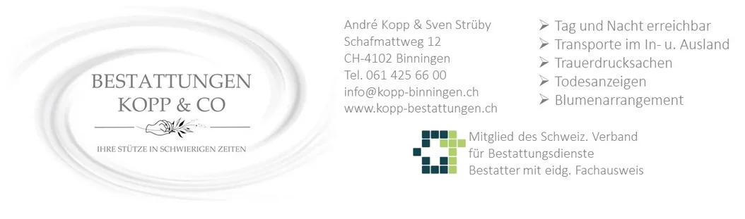 Ich musste die Firma Kopp in den letzten 4 Monaten leider 2-mal in Anspruch nehmen. Er war eine grosse Unterstützung und hat alles organisiert und uns abgenommen. Grosse Erfahrung