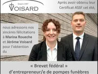 A member of the Swiss Association of Funeral Directors, Danielle Voisard obtained her "federal funeral director's certificate" in 2001. Fully bilingual and in conjunction with her own business, she agreed to serve on the Swiss central committee for several years, as head of the northwestern part of French-speaking Switzerland, as well as preparing for the federal certificate exams.