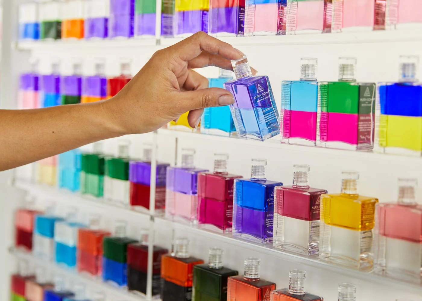 Aura-Soma ist eine ganzheitliche, farbbasierte Therapie, die Farben, Kristalle, Pflanzen und ätherische Öle kombiniert, um das körperliche, emotionale und spirituelle Wohlbefinden zu fördern. Die Methode basiert auf der Annahme, dass die intuitive Farbwahl der Kunden ihre Bedürfnisse widerspiegelt und zu innerem Gleichgewicht führt. Bei einer Anwendung werden meist vier farbige Equilibirum-Flaschen ausgewählt, die aus einer öligen und einer wässrigen Phase bestehen.