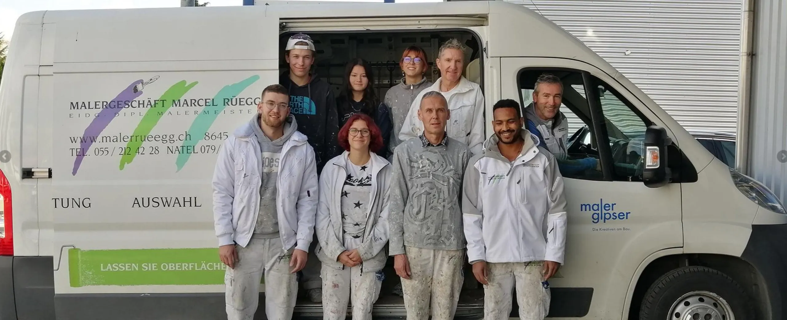 "Painting, plastering, and wallpapering The Rüegg painting company is your expert for all painting and wallpapering work during renovations, in new buildings, for facade renovations, for color design and decorative painting, and last but not least, for mold and water damage. You've come to the right place! Our skilled professionals will be happy to advise you, and together we will find a solution that meets your needs. We look forward to your call."