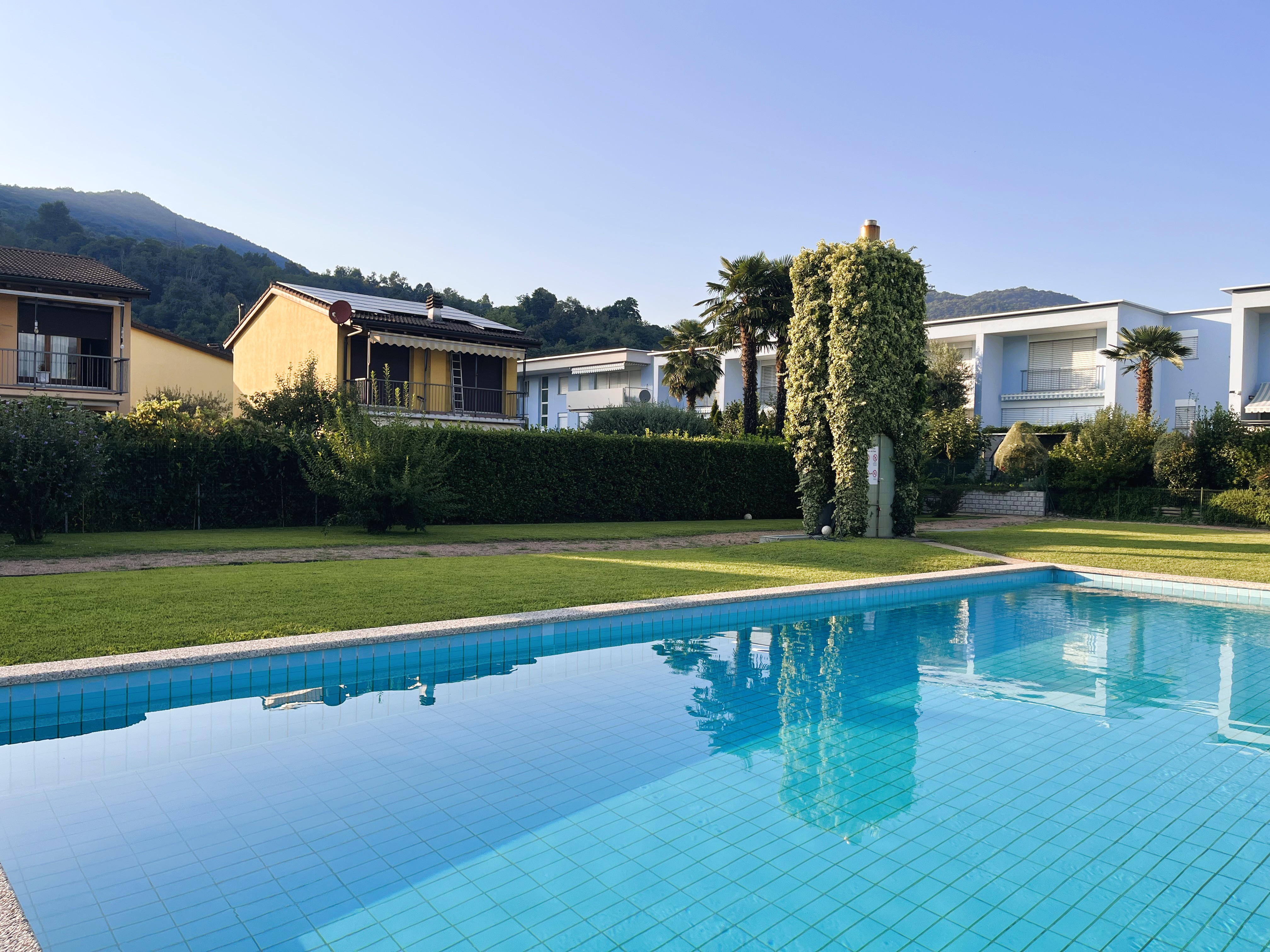À Caslano, dans un quartier résidentiel calme et très ensoleillé, à 200 mètres du lac, nous vendons un appartement-terrasse de 2,5 pièces d'environ 55 m2, idéal également comme résidence secondaire. Il se situe dans un bel ensemble composé de plusieurs immeubles et maisons mitoyennes, avec un grand jardin agrémenté d'une belle piscine, d'une aire de jeux pour enfants et d'une pergola avec table et bancs en granit.